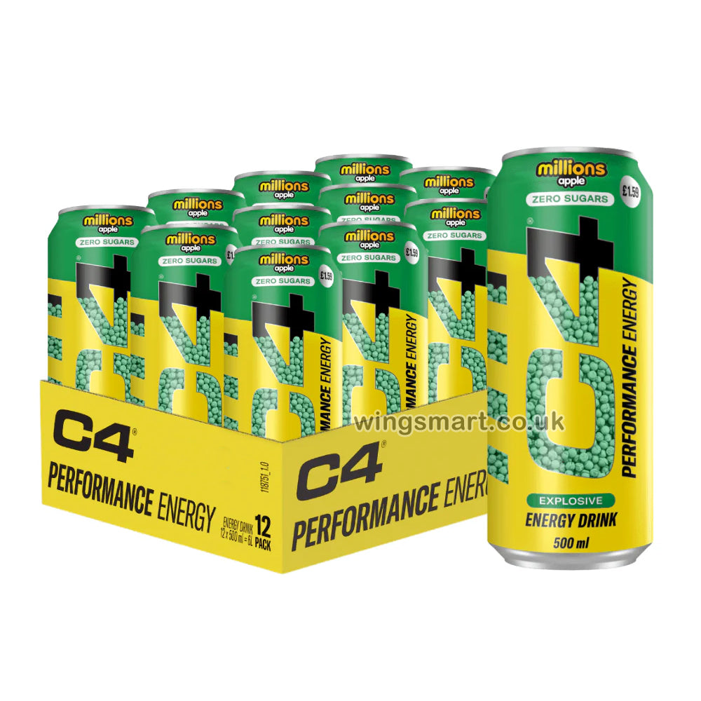 Buy C4 Performance Energy Millions Apple Explosive Energy Drink 12 x 500ml Cans for best price in UK with express delivery