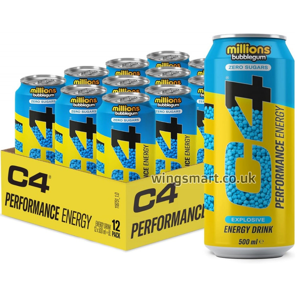 Buy C4 Performance Millions Bubblegum Zero Sugar Energy Drink 12 x 500ml Cans for best price in UK with express delivery