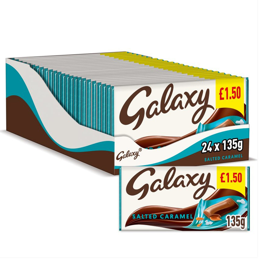 Buy Galaxy Salted Caramel & Milk Chocolate Block Bar 135g PMP (Box of 24) for best price in UK with express delivery