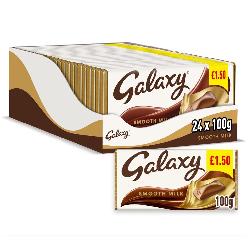 Buy Galaxy Smooth Milk Chocolate Block Bar PMP 100g (Box of 24) for best price in UK with express delivery
