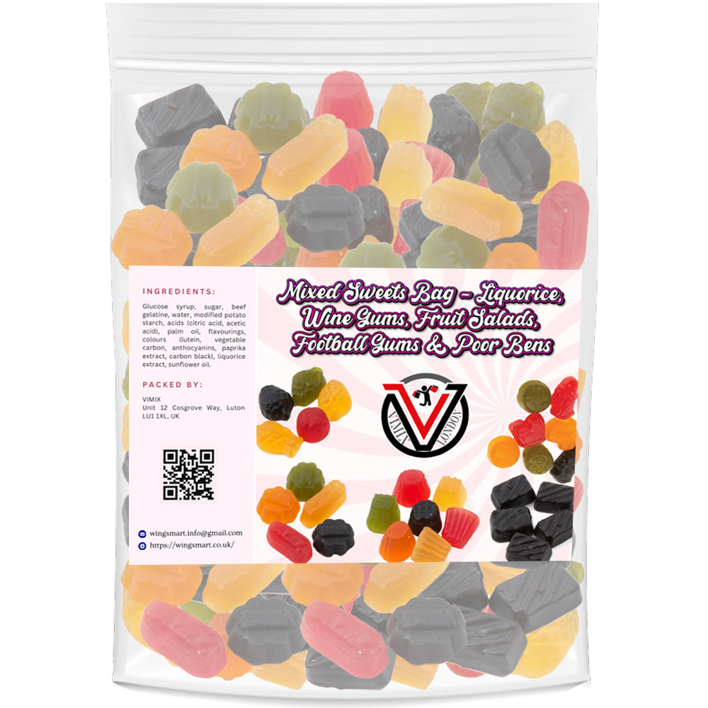 VIMIX Mixed Sweets Bag Liquorice, Wine Gums, Fruit Salads, Footballs Gums & Poor Bens