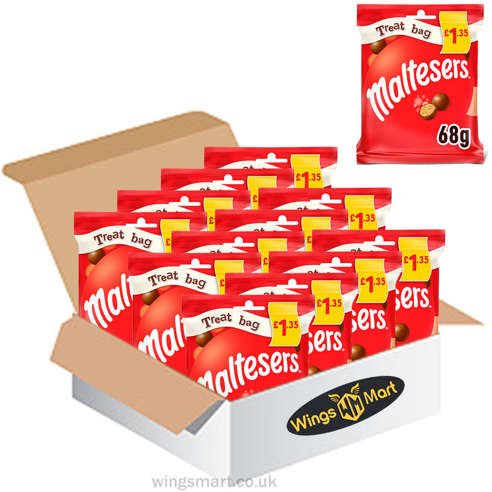 Enjoy the irresistible combination of smooth Maltesers Milk Chocolate and crunchy honeycomb pieces in this convenient treat bag. Each 68g bag is priced at just £1.35 PMP, making it the perfect on-the-go snack or a great addition to your chocolate collection.