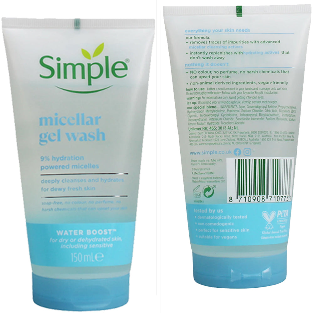 Buy Simple Micellar Facial Wash Gel – 6 x 150ml for best price in UK with express delivery