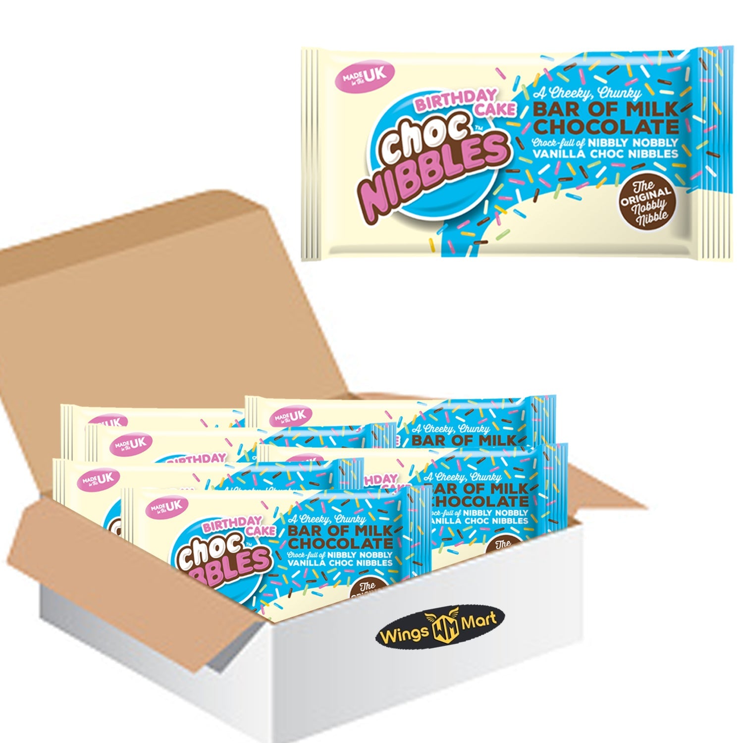 Milk chocolate bar with vanilla flavoured Birthday Cake choc nibble inclusions