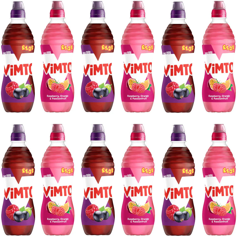Enjoy the refreshing taste of Vimto with our 12-pack (500ml each) in two delicious flavors: Blackberry, Raspberry & Blueberry or Raspberry, Orange & Passionfruit. Perfect for any occasion. Shop now with fast UK delivery!